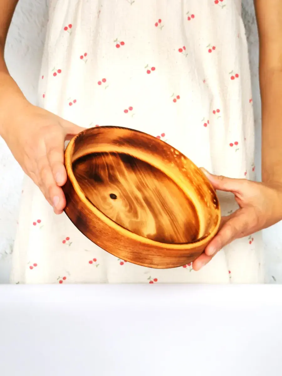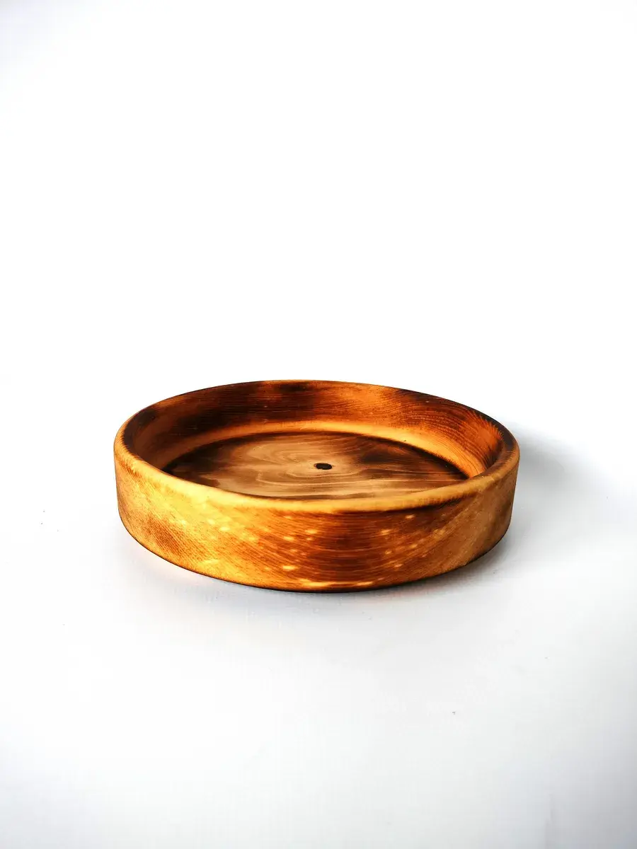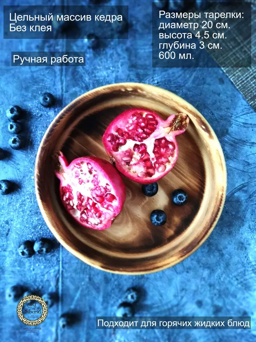 Тарелка из цельного МАССИВА СИБИРСКОГО КЕДРА, ручной работы в натуральном цвете! Пропитана нашим составом на основе растительного масла, кедровой смолы и пчелиного воска. Перед использованием обязательно промыть теплой проточной водой, чтоб смыть остаткипокрытия. Изделие может стать чуть светлее. Популярность посуды из кедра объясняется как красотой древесины, так и ее лечебными качествами. Тарелки и миски удобны для приема пищи и для ее хранения. Большинство из нас с вами - жители городов, окруженные бетоном, металлом и пластиком. И все чаще хочется среди этого скоростного ритма жизни остановиться и насладиться ароматом и теплым прикосновением натурального дерева.Люди, пользующиеся такими тарелками, могут подтвердить, что еда сохраняет свежесть намного дольше: она не прокиснет и не покроется плесенью. Древесина кедра придаст пище особый аромат и вкус. Размер: Диаметр 20 см., высота 4,5 см., глубина 3см., вес 220 г., 600 мл..