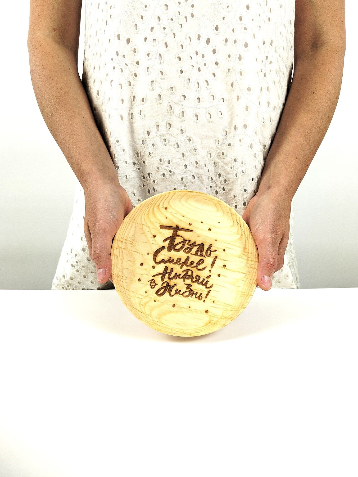 Тарелка деревянная мотивационная "Будь смелей, ныряй в жизнь"