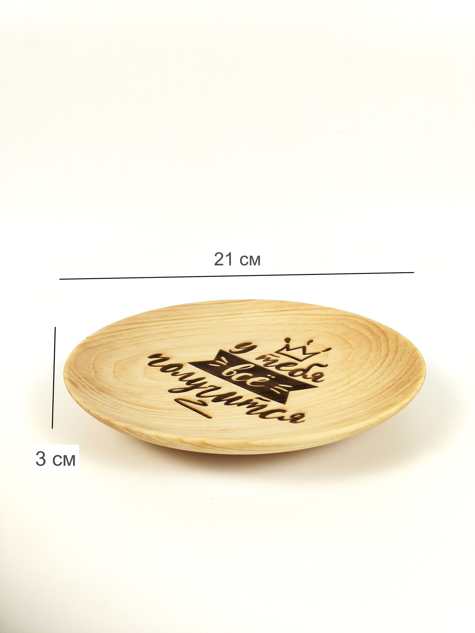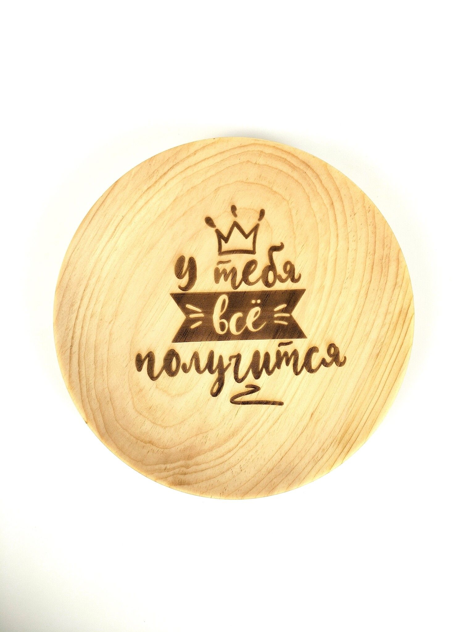 Тарелка из сибирского кедра с мотивационной надписью.
