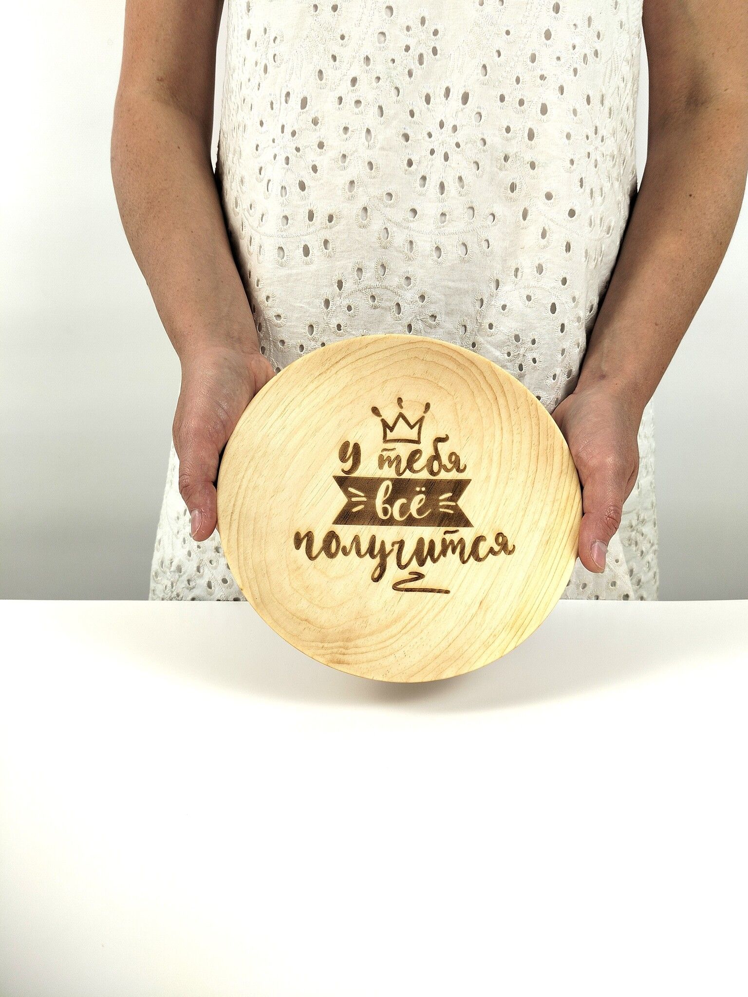 Фраза «У тебя всё получится», выполнена лазерной гравировкой, делает эту тарелку не просто посудой, а личным посланием.