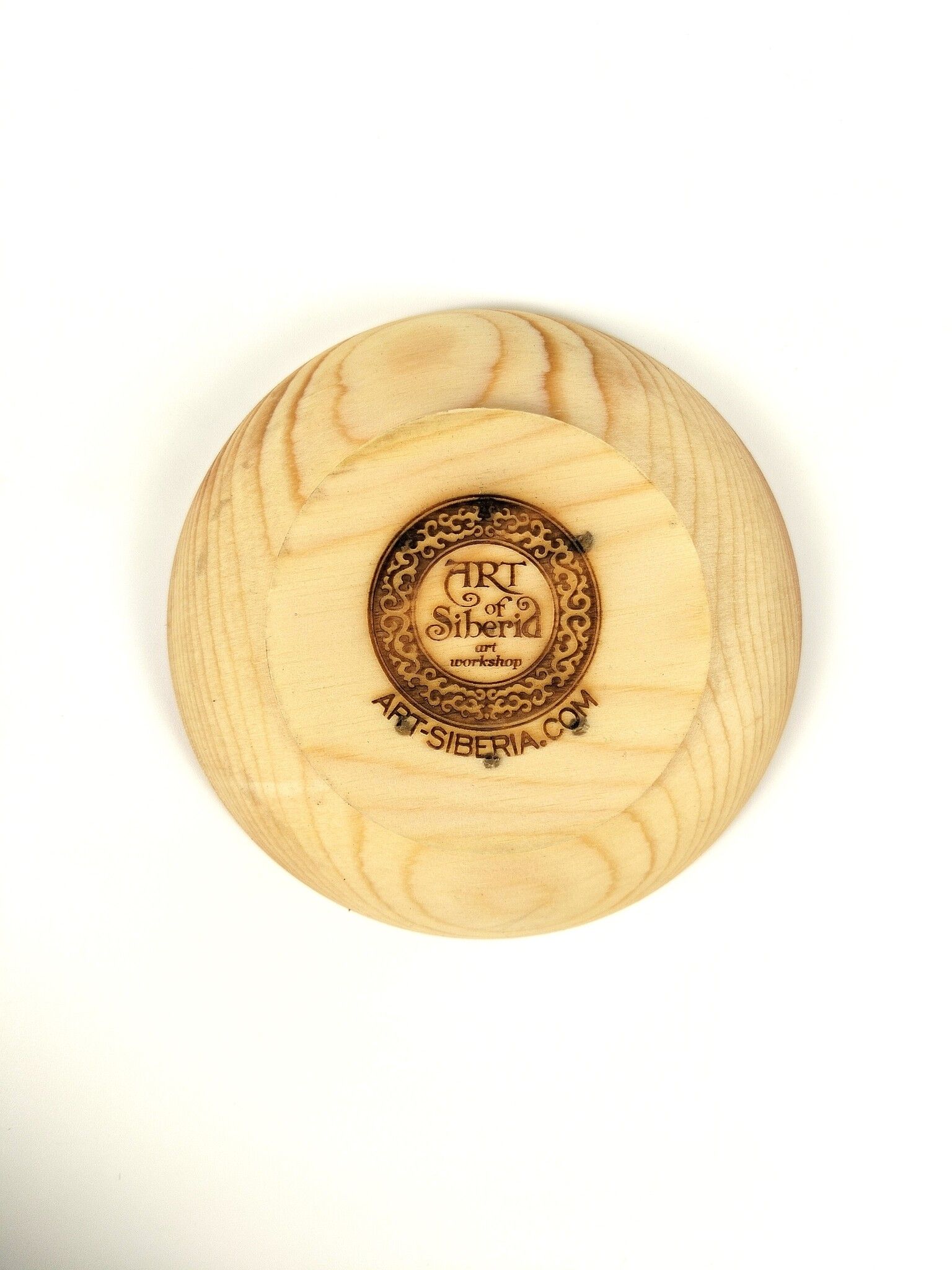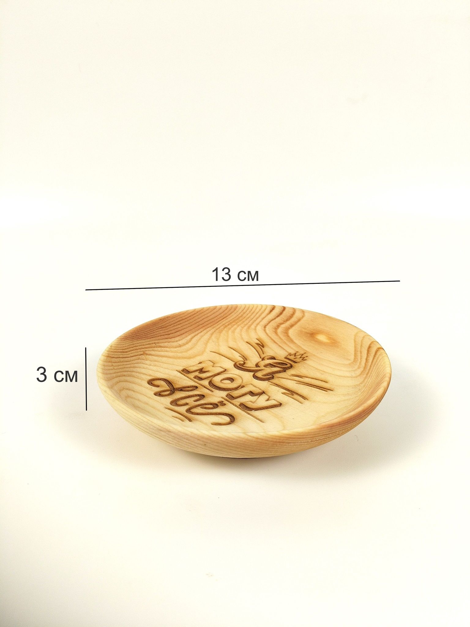 Тарелка из сибирского кедра с мотивационной надписью.