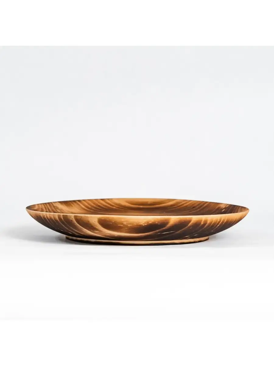 Деревянная плоская тарелка из сибирского кедра серии "ЛОТОС". Наша посуда - это стопроцентно натуральный продукт, созданный из древесины кедра, произрастающего в экологически чистых регионах Алтая и Сибири. Посуда из кедра имеет красивую текстуру, приятный оттенок, выделяет тонкий аромат, дезинфицирующий воздух помещений. Она обладает бактерицидными, антимикробными свойствами, аромат кедра способен оздоравливать воздух, придавать ему целебные качества.Покрыта составом из пчелиного воска, кедровой смолы и растительного масла. Пригодна для пищевых продуктов, как для холодной, так и для горячей пищи. Абсолютно экологичный продукт. **Размер:** диаметр 20 см., высота 2,5 см.