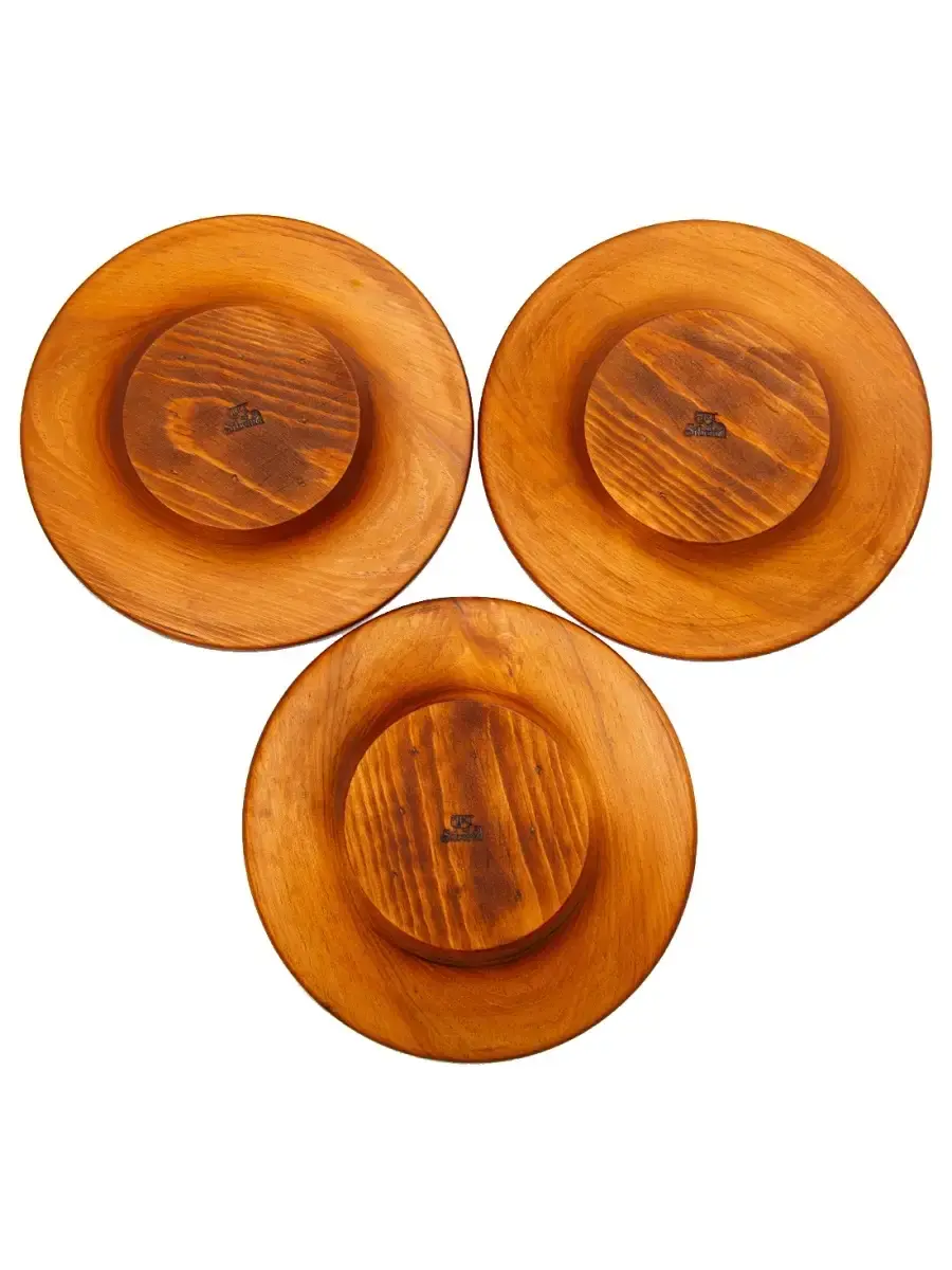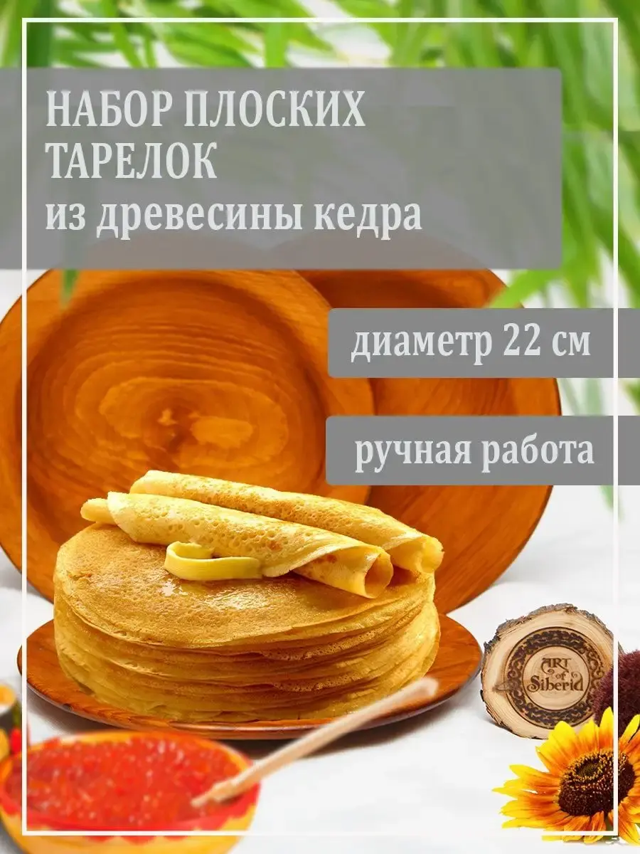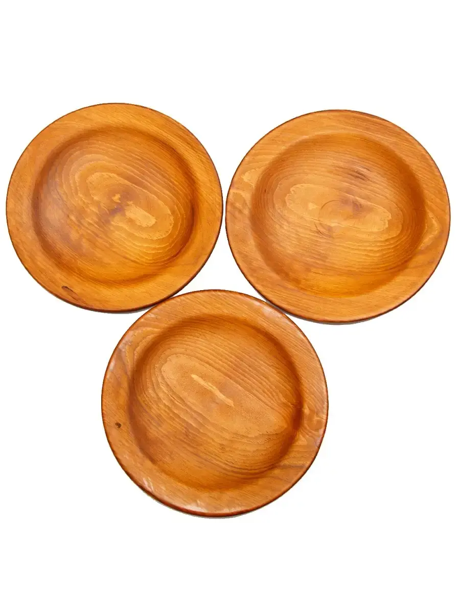 Набор тарелок плоских из натурального дерева Сибирского Кедра! Вся посуда, которая контактирует с едой, водой, покрывается специальным составом из пчелиного воска, растительного масла и кедровой смолы. Данный состав, попав в толщу древесины, под воздействием кислорода из воздуха полимеризуется, закупоривает поры древесины, делая её водонепроницаемой. Масло создаёт на поверхности изделия прочную и красивую плёнку, воск придает глянец готовым изделиям, а смола - приятный древесный аромат. Перед использованием обязательно промыть теплой проточной водой, чтоб смыть остатки масла и морилки. Изделие может стать чуть светлее. Первое время возможно оставление следов от морилки, поэтому лучше для протирания использовать бумажные полотенца. Размер одной тарелки: диаметр 22 см., высота 2,5 см. 3 шт.