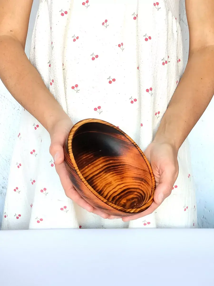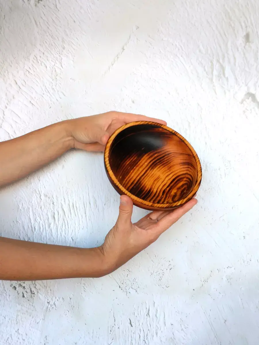 Глубокая тарелка из цельного куска дерева. Ручной работы из Сибирского Кедра! Пропитана нашим составом на основе растительного масла, кедровой смолы и пчелиного воска. Перед использованием обязательно промыть теплой проточной водой, чтоб смыть остатки масла . Изделие может стать чуть светлее. Популярность посуды из кедра объясняется как красотой древесины, так и ее лечебными качествами. Тарелки и миски удобны для приема пищи и для ее хранения. Люди, пользующиеся такими тарелками, могут подтвердить, что еда сохраняет свежесть намного дольше: она не прокиснет и не покроется плесенью. Древесина кедра придаст пище особый аромат и вкус. Размер: Диаметр 165 мм. Высота 47 мм. Объем 400 мл. Цвет "обжиг".