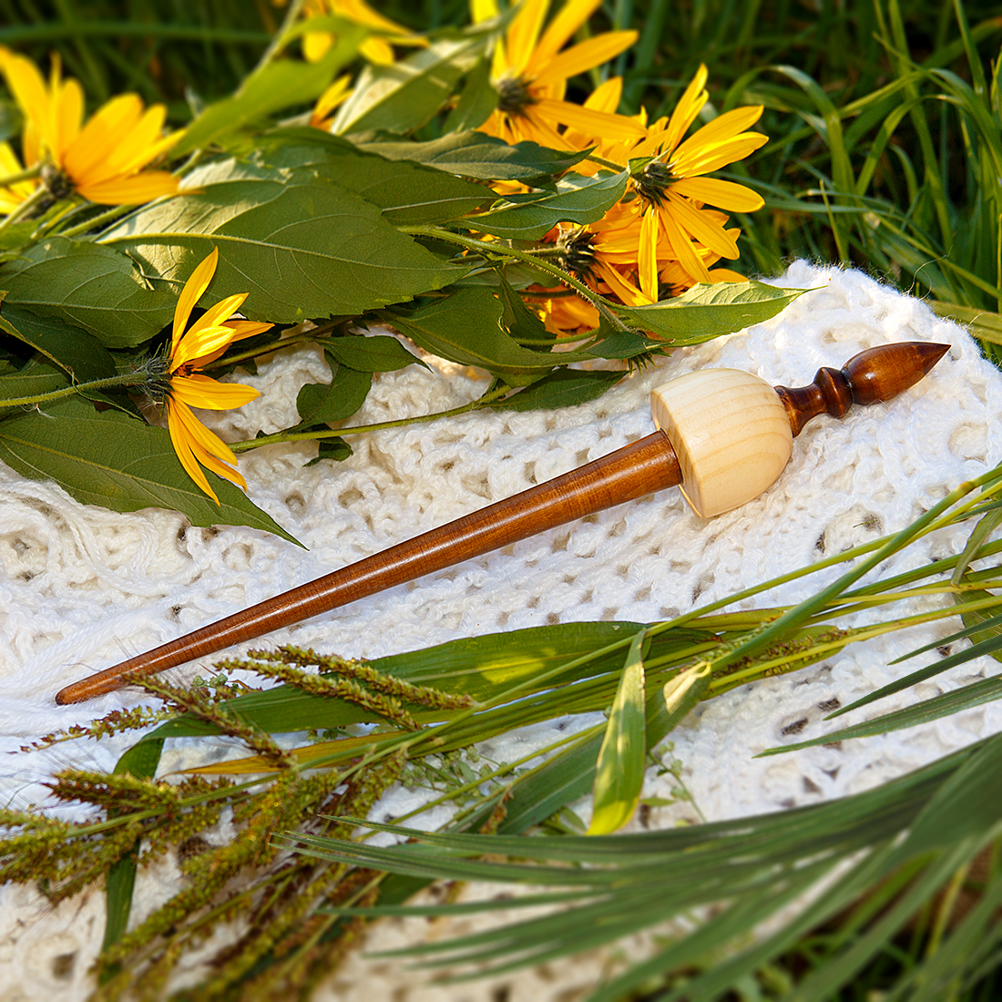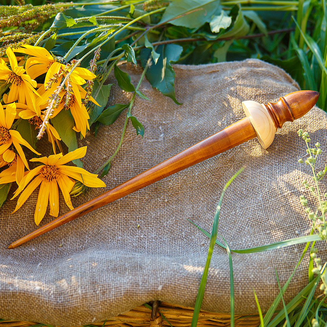 Тибетское опорное веретено из дерева сибирский кедр.