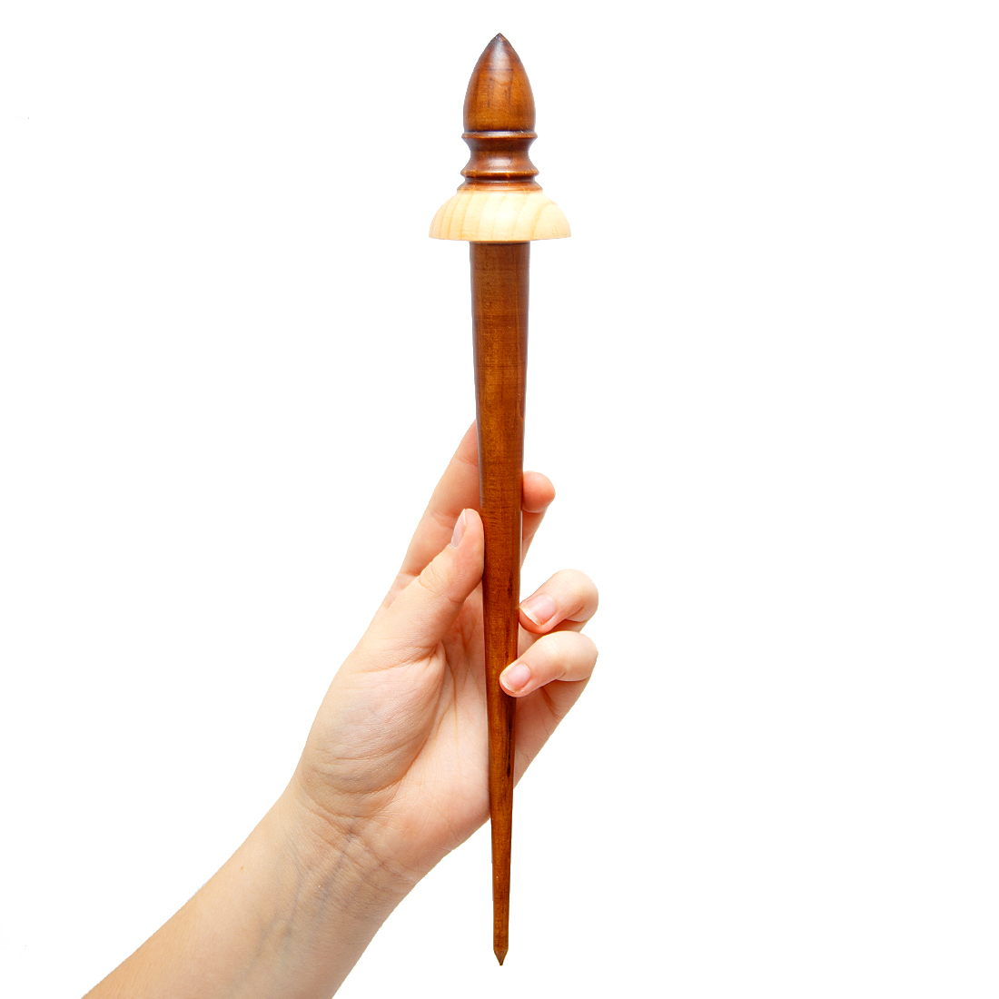 "Кривое веретено не надёжа (не оденет)" - так говорили в старину. Прядение - одно из древнейших женских ремёсел на земле. Это было самое трудоемкое из всех видов работ, падавших на плечи крестьянки. Почти пять месяцев в году, с ноября по март, проводила она с веретеном за прялкой. Эти инструменты всегда следовали за пряхой, они также были своеобразными оберегами от злых сил и неурядиц. Веретёна до сих пор являются хорошим выбором как для начинающих, так и для опытных прядильщиц. Они дёшевы, компактны и универсальны. А вязаные вещи (рукавицы, носки, платки) из пряжи ручной работы особенно ценятся. Поэтому история веретена продолжается. На фото - классическое русское веретено из натурального сибирского кедра! Отполировано и покрыто лаком. Приятно и удобно в использовании! Маленькое русское веретено может стать хорошим сувениром-подарком для рукодельницы: для дочери, жены, матери, как по прямому назначению, так и в виде сувенира или украшения в интерьере, а также как деталь костюма для кукол в русском наряде.