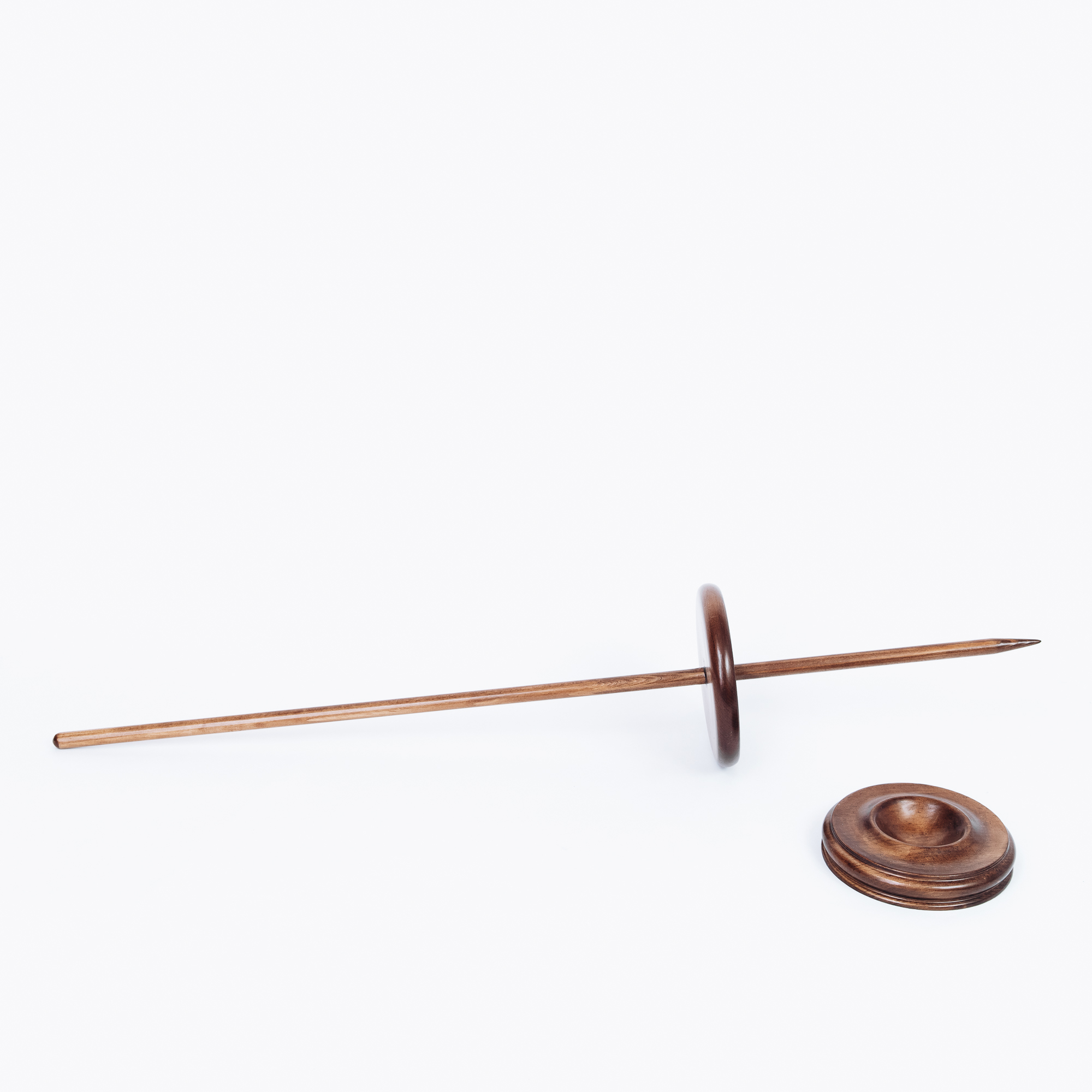 "Кривое веретено не надёжа (не оденет)" - так говорили в старину. Прядение - одно из древнейших женских ремёсел на земле. Это было самое трудоемкое из всех видов работ, падавших на плечи крестьянки. Почти пять месяцев в году, с ноября по март, проводила она с веретеном за прялкой. Эти инструменты всегда следовали за пряхой, они также были своеобразными оберегами от злых сил и неурядиц. Веретёна до сих пор являются хорошим выбором как для начинающих, так и для опытных прядильщиц. Они дёшевы, компактны и универсальны. А вязаные вещи (рукавицы, носки, платки) из пряжи ручной работы особенно ценятся. Поэтому история веретена продолжается. На фото - классическое русское веретено из натурального сибирского кедра! Отполировано и покрыто лаком. Приятно и удобно в использовании! Маленькое русское веретено может стать хорошим сувениром-подарком для рукодельницы: для дочери, жены, матери, как по прямому назначению, так и в виде сувенира или украшения в интерьере, а также как деталь костюма для кукол в русском наряде.