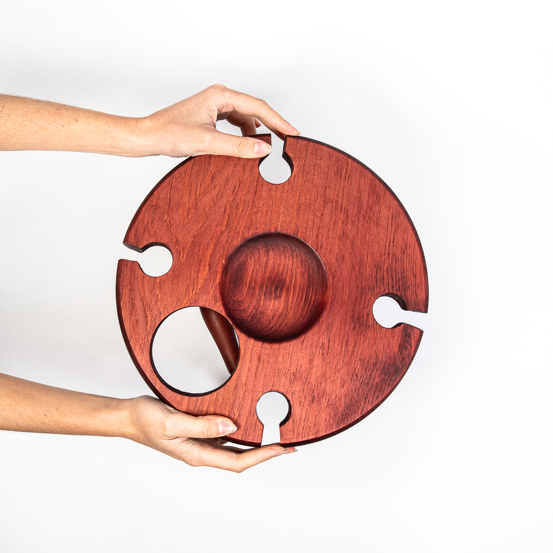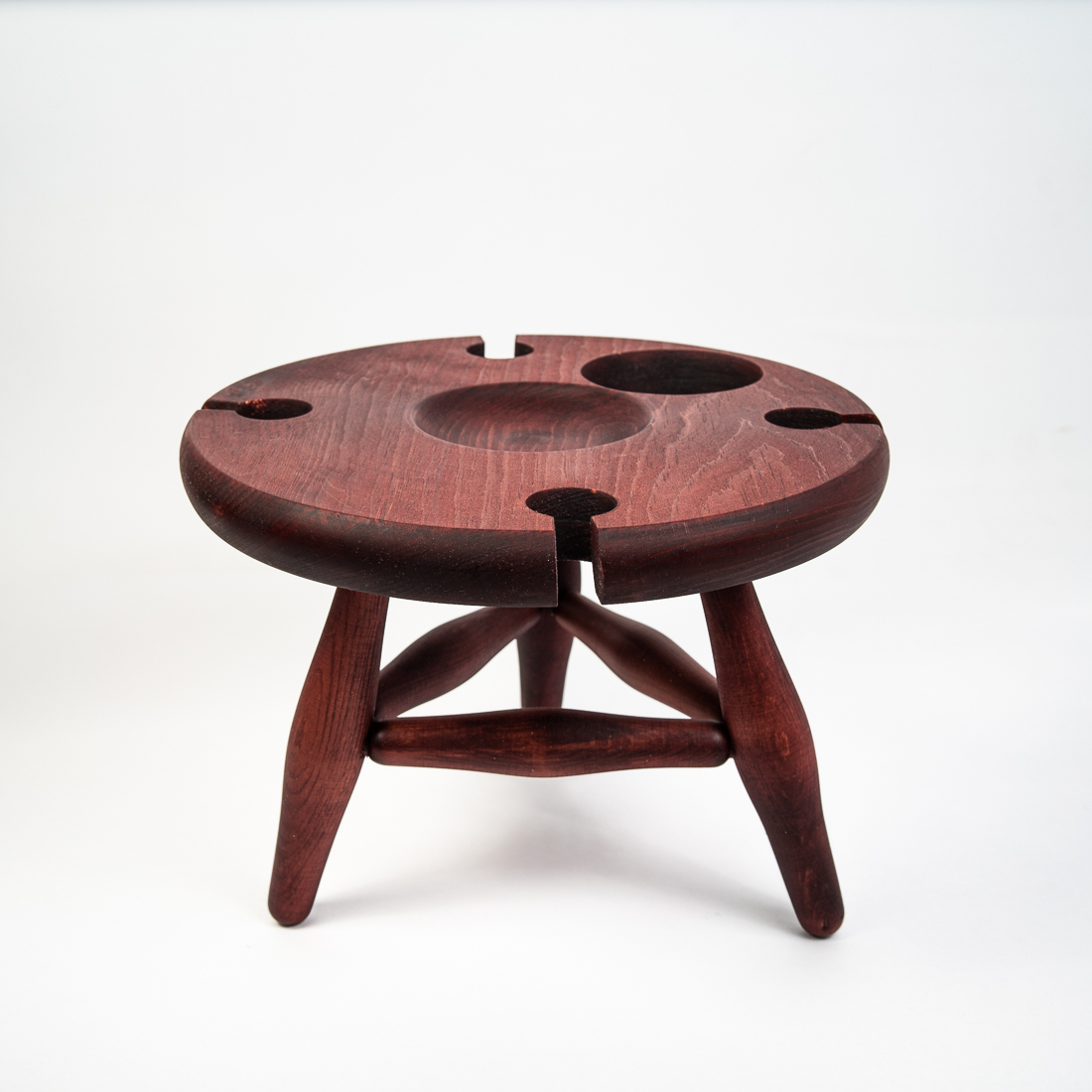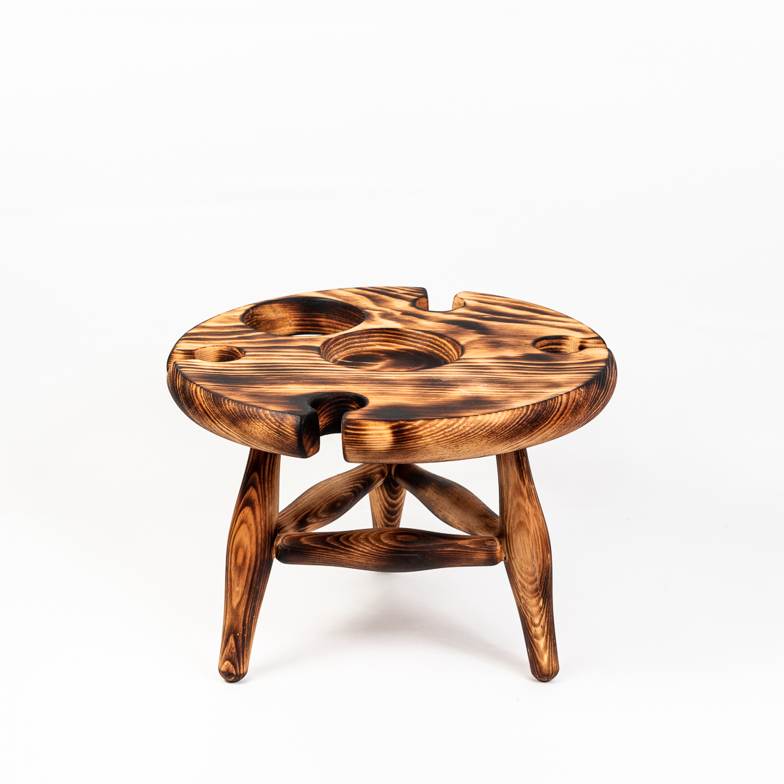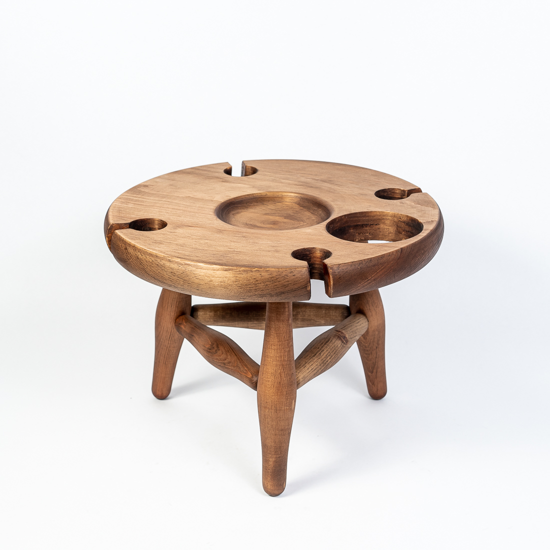 На фото – винный столик из дерева сибирского кедра. Мобильный, легкий и компактный. Уникальная конструкция фиксирует бокалы и бутылку, что позволяет использовать их, даже на неровных поверхностях. Идеален для пикников и дома. Ручная работа из цельного массива. Покрыт составом из растительного масла, пчелиного воска и смолы кедра. Возможные цвета: орех, махагон, дуб или оставить натуральный оттенок. Приобретая такой столик, вы можете быть абсолютно уверенны в 100% уникальности и полезности изделия. Также это отличный подарок любимым и друзьям!