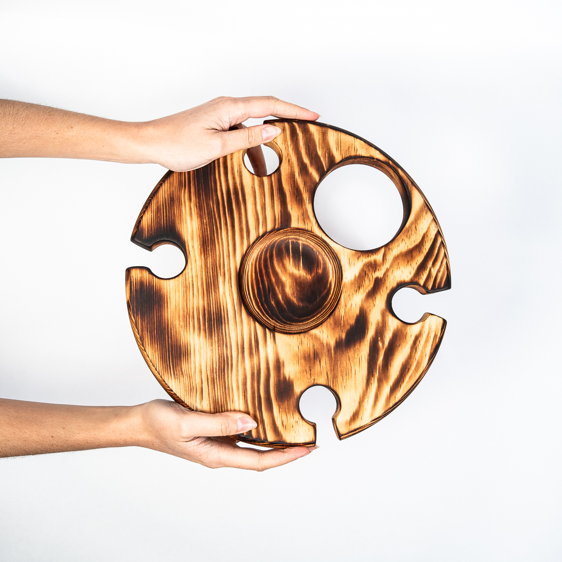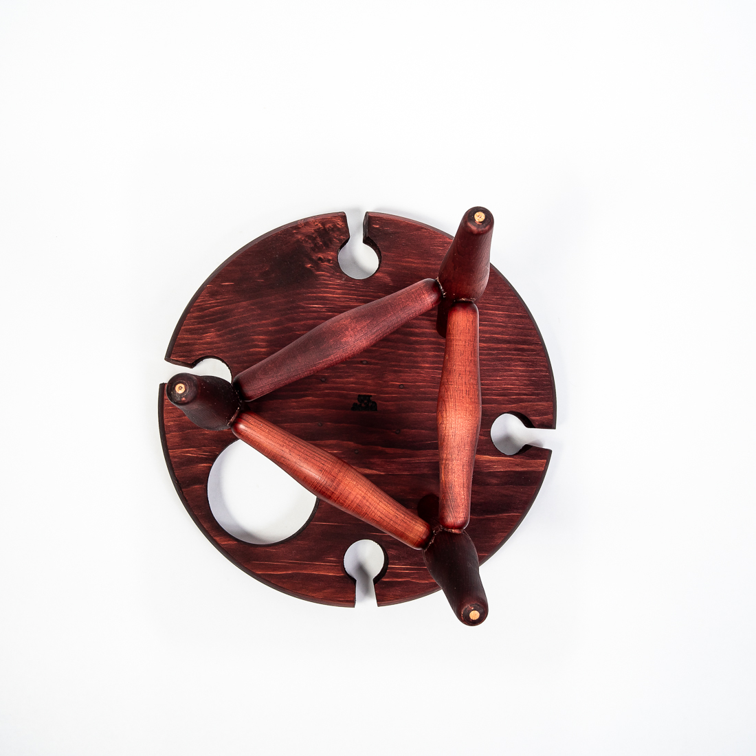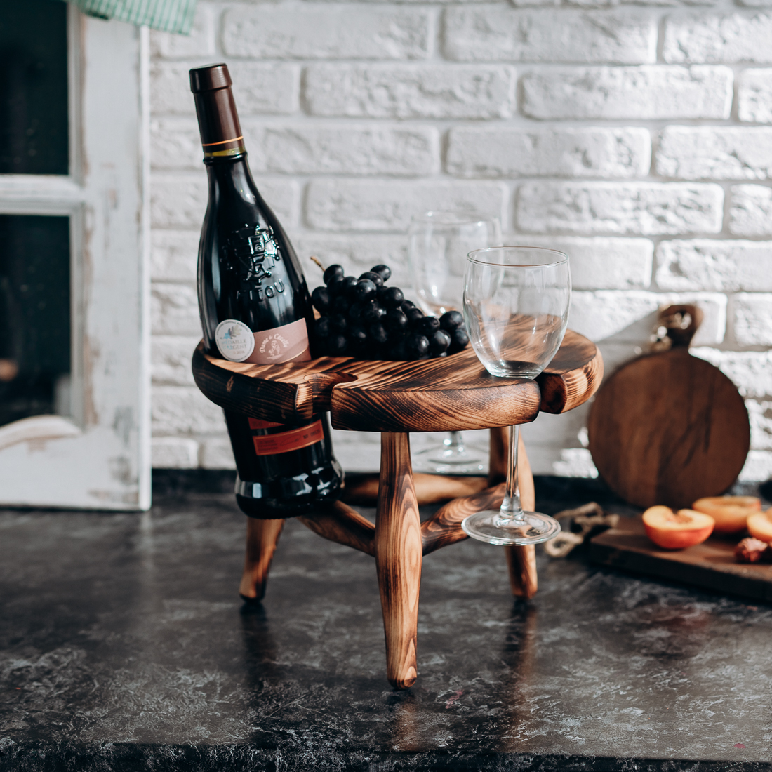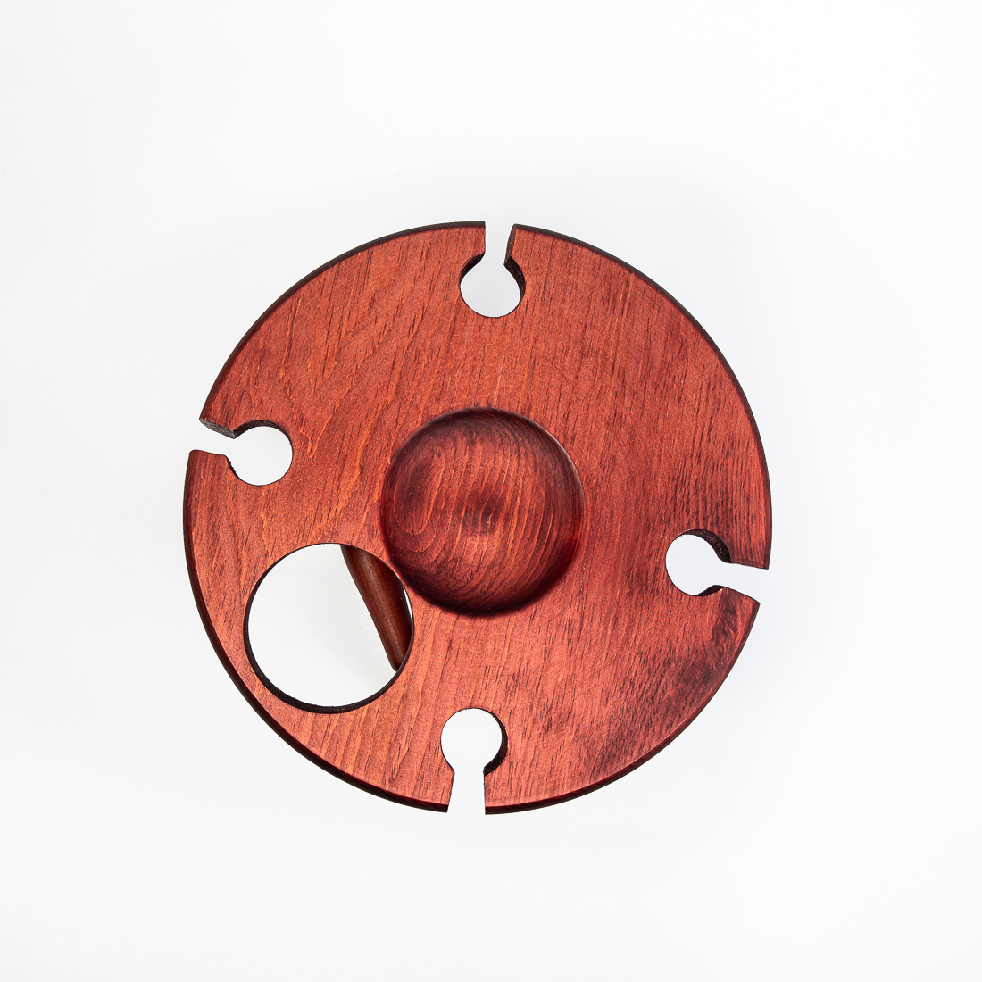 На фото – винный столик из дерева сибирского кедра. Мобильный, легкий и компактный. Уникальная конструкция фиксирует бокалы и бутылку, что позволяет использовать их, даже на неровных поверхностях. Идеален для пикников и дома. Ручная работа из цельного массива. Покрыт составом из растительного масла, пчелиного воска и смолы кедра. Возможные цвета: орех, махагон, дуб или оставить натуральный оттенок. Приобретая такой столик, вы можете быть абсолютно уверенны в 100% уникальности и полезности изделия. Также это отличный подарок любимым и друзьям!