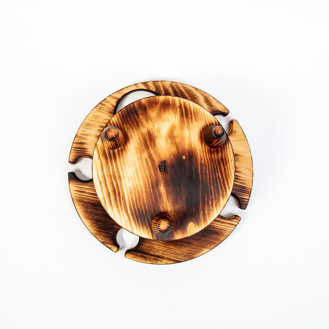 На фото – винный столик из дерева сибирского кедра. Мобильный, легкий и компактный. Уникальная конструкция фиксирует бокалы и бутылку, что позволяет использовать их, даже на неровных поверхностях. Идеален для пикников и дома. Ручная работа из цельного массива. Покрыт составом из растительного масла, пчелиного воска и смолы кедра. Возможные цвета: орех, махагон, дуб или оставить натуральный оттенок. Приобретая такой столик, вы можете быть абсолютно уверенны в 100% уникальности и полезности изделия. Также это отличный подарок любимым и друзьям!