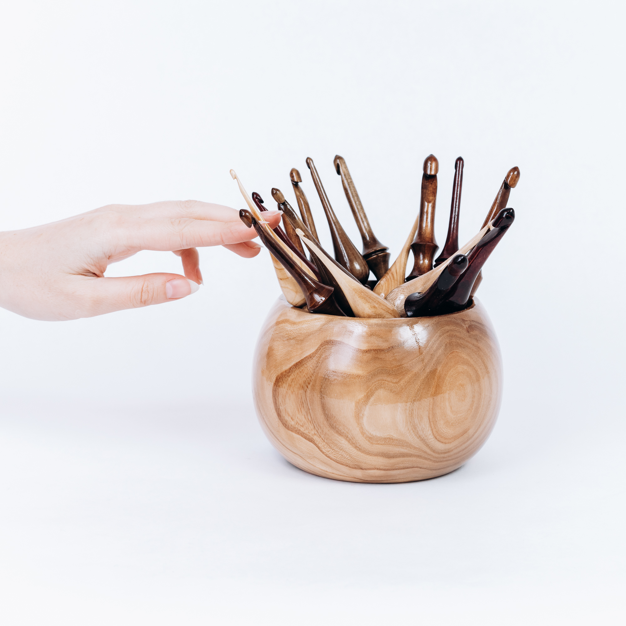 Набор крючков и клубочница (органайзер) для хранения из натурального Дерева! Крючки изготовлены из разных пород дерева (вишня, вяз, карагач, Сибирский кедр, слива, груша.). Клубочница - из Вяза. В наборе 16 крючков. Легкие, приятные на ощупь, эргономичные, тщательно отполированы! Широкий размерный ряд поможет создавать различные изделия из любой пряжи! А удобная клубочница позволит хранить крючки и пряжу в одном месте!