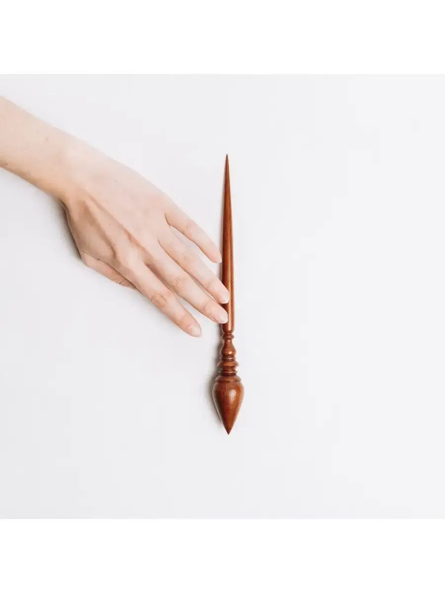 Классическое русское веретено из натурального дерева - махагон! Отполировано и покрыто лаком. Приятно и удобно в использовании! Маленькое русское веретено может стать хорошим сувениром-подарком для рукодельницы: для дочери, жены, матери, как по прямому назначению, так и в виде сувенира или украшения в интерьере, а также как деталь костюма для кукол в русском наряде. **Размер:** длина 23,5 см, диаметр 2,7 см.
