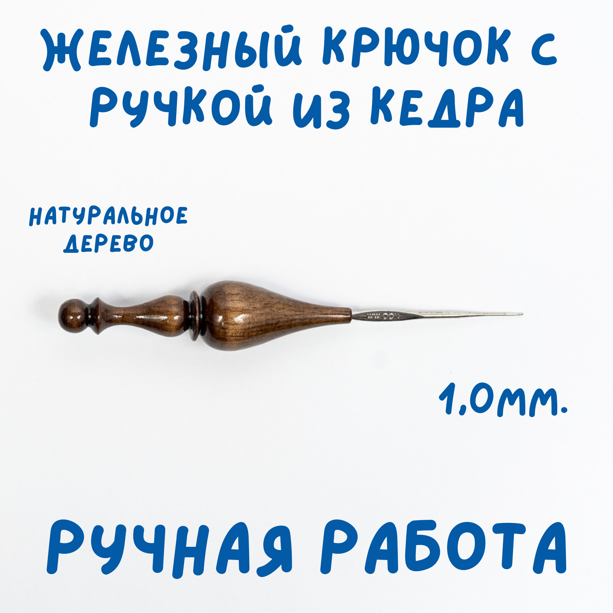 Классический железный крючок 0,8 мм. с деревянной ручкой из натурального дерева Сибирского кедра.